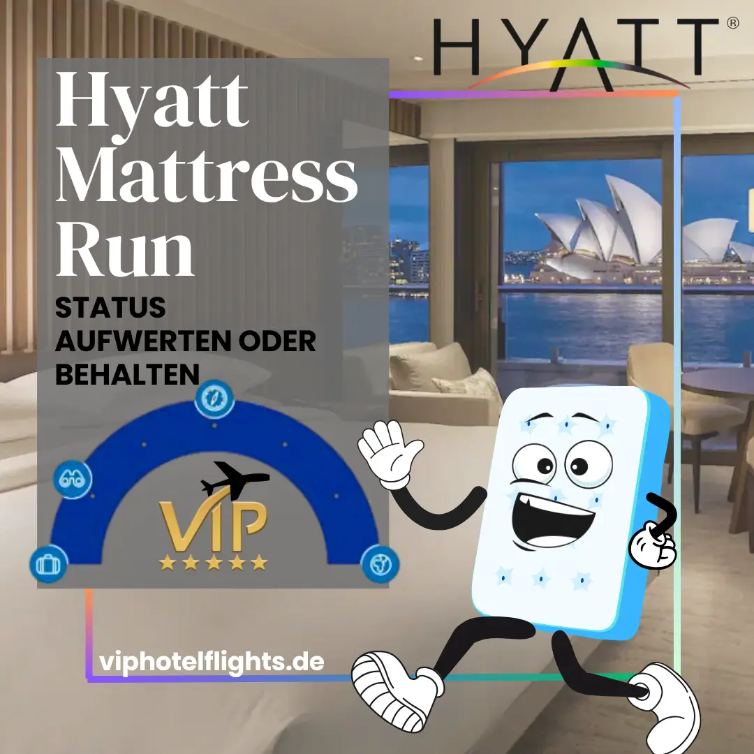 Ein Hyatt Mattress Run bezeichnet das gezielte Buchen und Absolvieren von Übernachtungen in Hyatt-Hotels, um schnell qualifizierende Nächte zu sammeln – nicht primär wegen des Aufenthalts selbst, sondern um einen höheren Status wie den Hyatt Globalist zu erreichen oder zu verlängern. Dabei werden oft günstige Hotels gewählt und bewusst Übernachtungen “eingekauft”, ohne dass man sie wirklich nutzt.