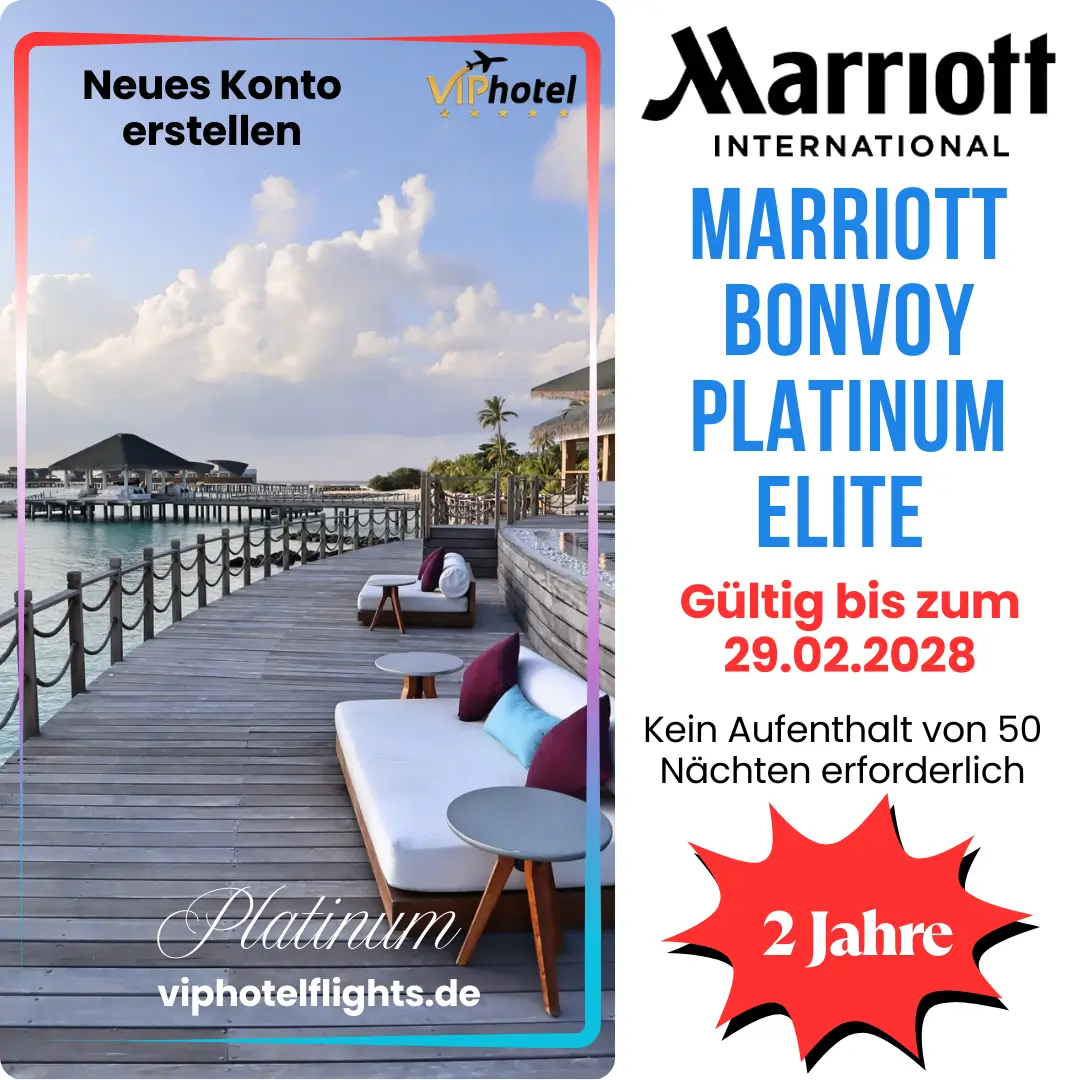 🚨 🚨 Dieses Angebot dient der Erstellung eines neuen Marriott Bonvoy Platinum Kontos mit einer Laufzeit von 2 Jahren – gültig bis zum 29.02.2028 – ohne den Nachweis von 50 Übernachtungen.
