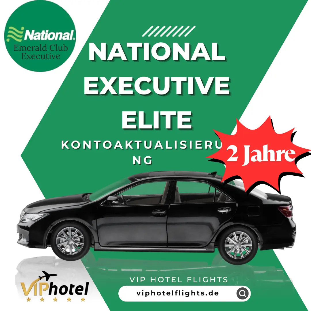 Mit dem VIP Hotel Flights Fast Track sichern Sie sich jetzt den begehrten National Executive Elite Status – ohne komplizierte Challenges oder lange Wartezeiten! Dieses exklusive Upgrade bietet Ihnen sofortigen Zugang zu den Premium-Vorteilen von National Car Rental – ganz bequem und effizient.